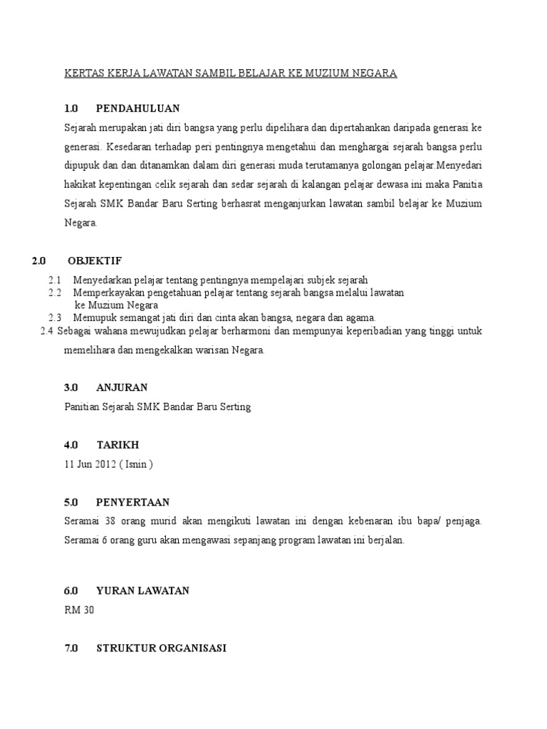 Contoh Kertas Kerja Lawatan Ke Muzium Negara Pdf